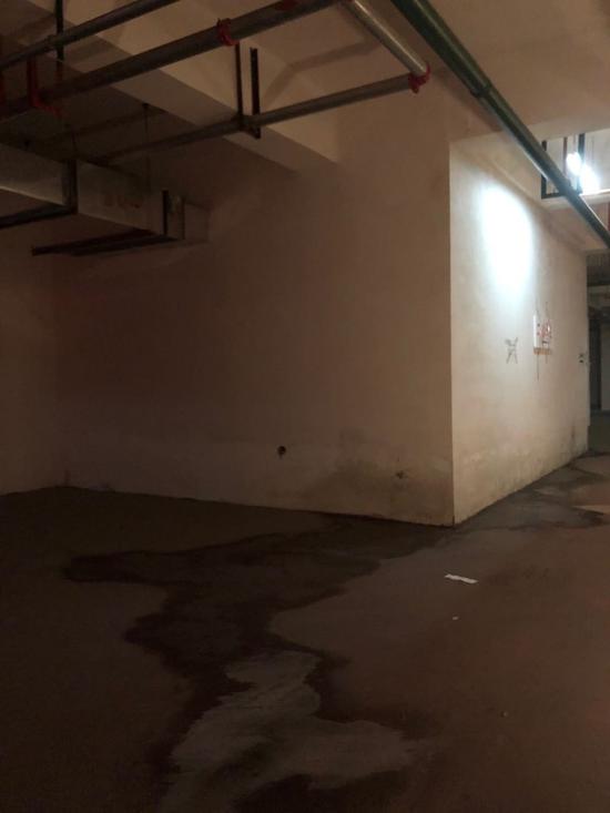 而成鹏实地拍摄的照片显示,近一年过去,他购买的商品房所属楼栋车库渗水、积水现象仍然存在,白墙上留有新旧水痕。据他反映,附近几栋楼都有相似的问题。